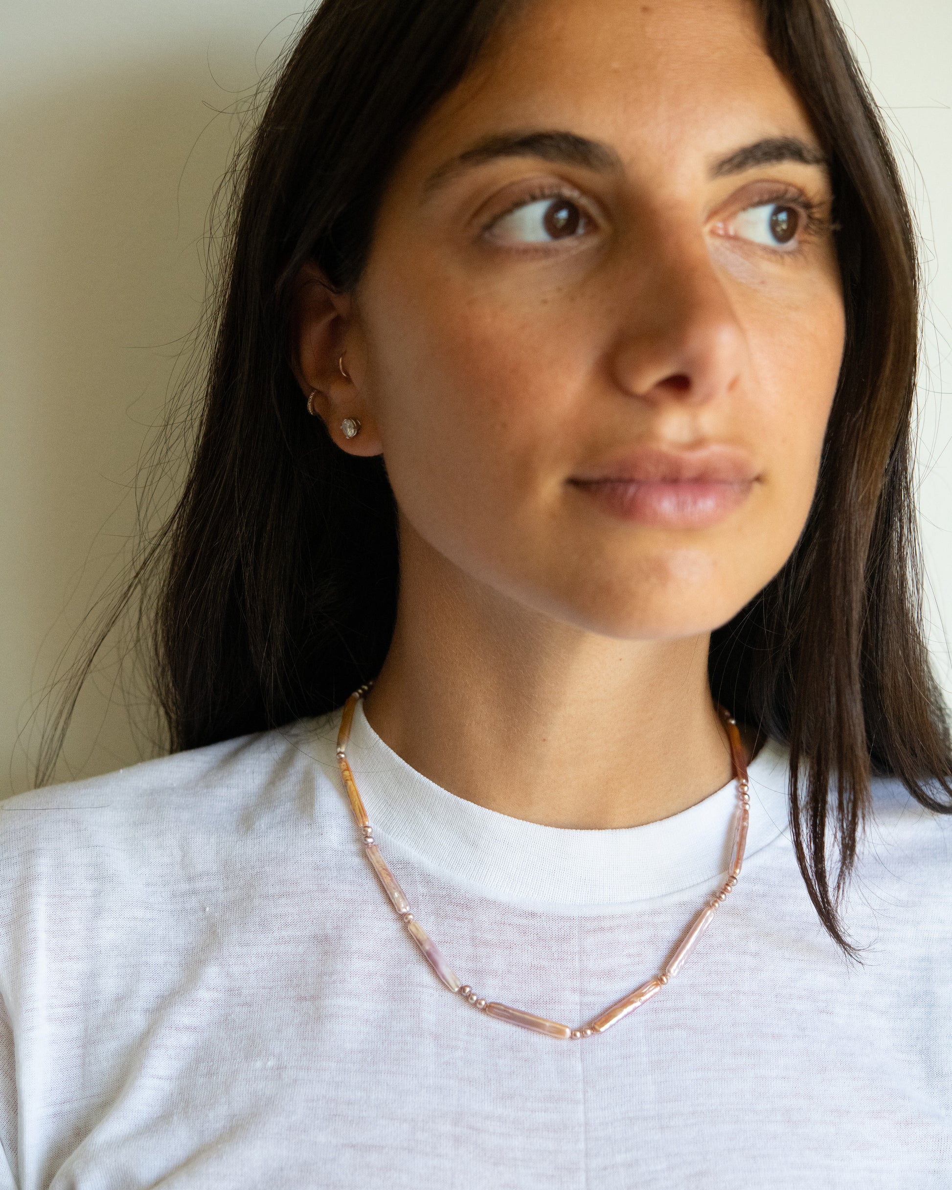 - Pink Biwa Pearl + Pink Seed Pearls