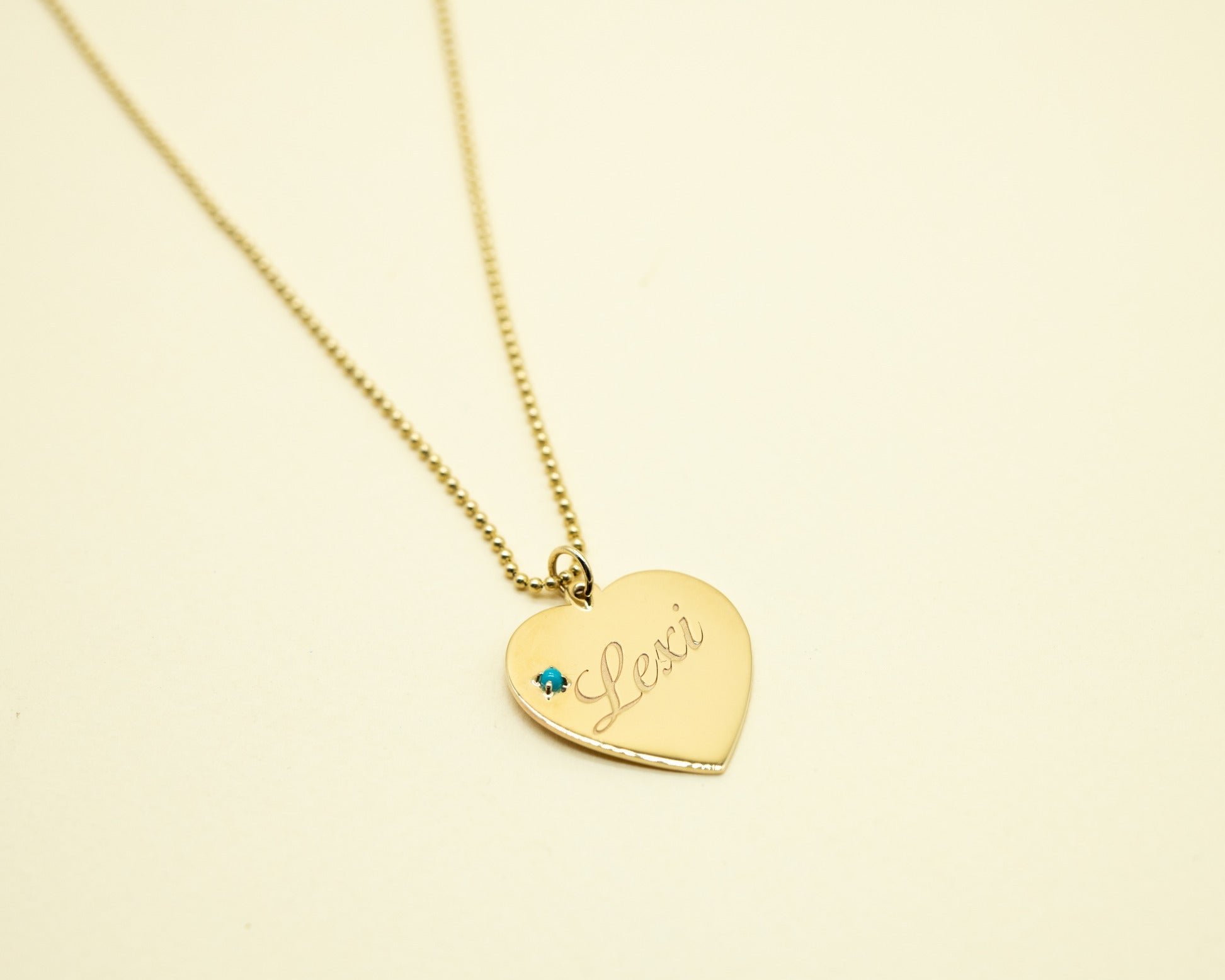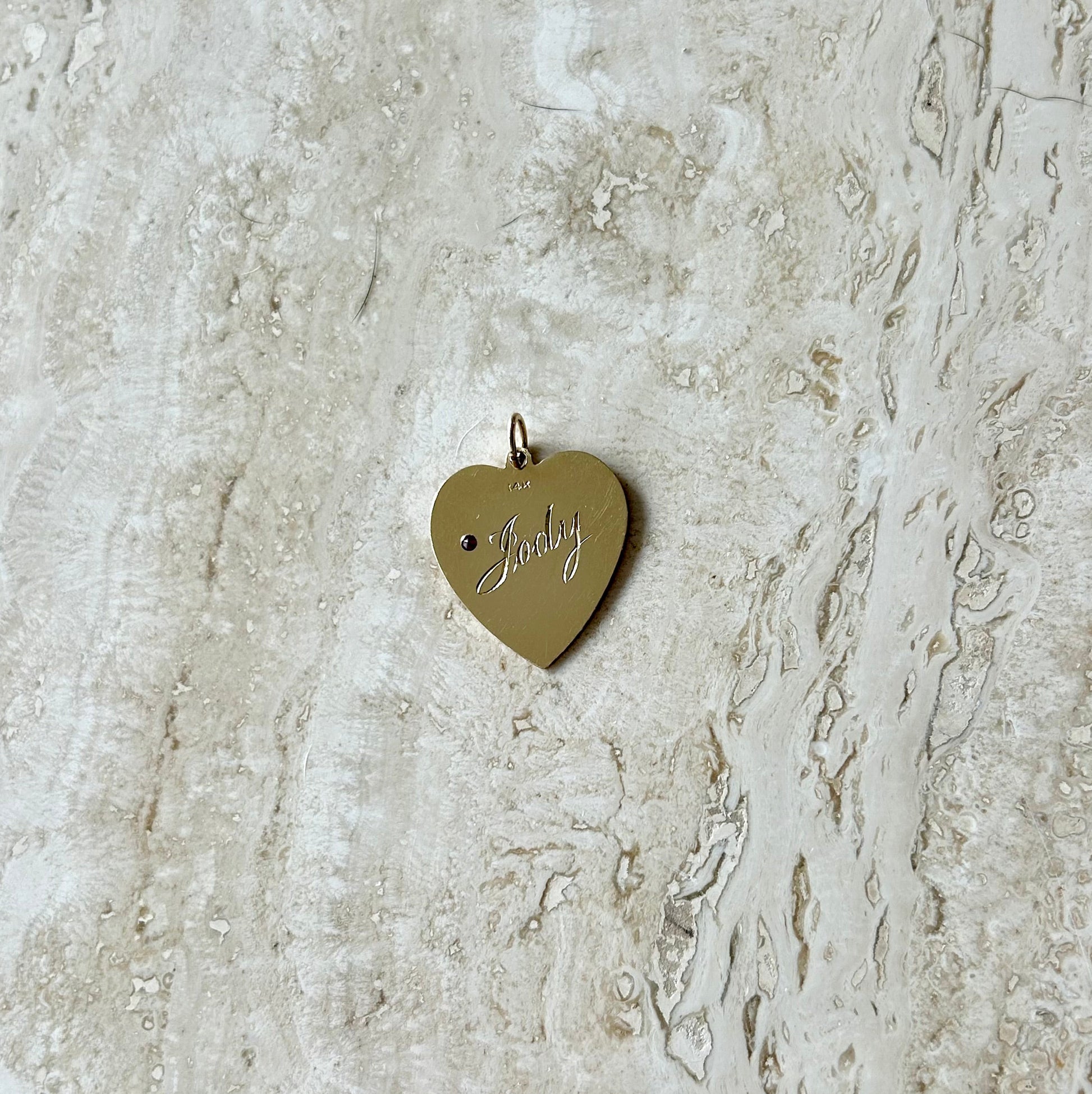 This solid 14k gold heart pendant is hand made and engraved by artisans in Los Angeles, and the shape was taken directly from the original Jody pendant.